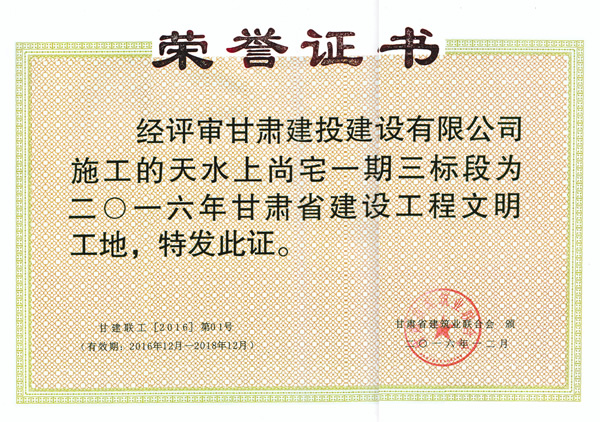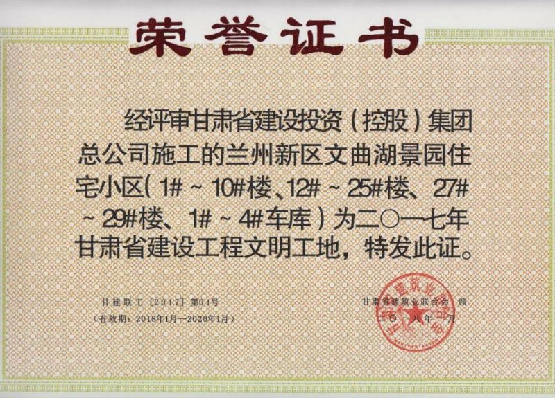 自2014年以來,二安公司承建了平?jīng)雎肺Ef房改造工程2#商住房項(xiàng)目的安裝工程、蘭州新區(qū)石化產(chǎn)業(yè)園7#樓項(xiàng)目安裝工程、蘭州新區(qū)文曲湖景園住宅小區(qū)4#、10#樓項(xiàng)目安裝工程、天水上尚宅一期三標(biāo)段5#、9#、8#、12#樓項(xiàng)目安裝工程、天水總部經(jīng)濟(jì)城7號(hào)樓項(xiàng)目安裝工程等10余項(xiàng)項(xiàng)目安裝。其中2015年蘭州新區(qū)石化產(chǎn)業(yè)園區(qū)安置房項(xiàng)目被評(píng)為甘肅省建設(shè)工程文明工地;2016年平?jīng)雎肺Ef房改造房(建工瑞景2#樓)項(xiàng)目,獲得甘肅省AAA級(jí)安全文明工地、飛天獎(jiǎng);天水總部經(jīng)濟(jì)城二期7#樓項(xiàng)目,獲得甘肅省AAA級(jí)安全文明工地;2017年文曲湖4#、10#樓工地被甘肅建投建設(shè)有限公司評(píng)為2016年度優(yōu)秀項(xiàng)目經(jīng)理部;2017年天水上尚宅榮獲甘肅省文明工地稱號(hào);2018年經(jīng)評(píng)審甘肅省建設(shè)投資(控股)集團(tuán)總公司施工的蘭州新區(qū)文曲湖景園住宅小區(qū)(1#-10#、12#-25#、27#-29#、1#-4#車庫)為2017年甘肅省建設(shè)工程文明工地;深受建設(shè)單位和社會(huì)各界的信賴與好評(píng)。全公司涌現(xiàn)出一大批優(yōu)秀項(xiàng)目經(jīng)理部、優(yōu)秀項(xiàng)目經(jīng)理和先進(jìn)個(gè)人。