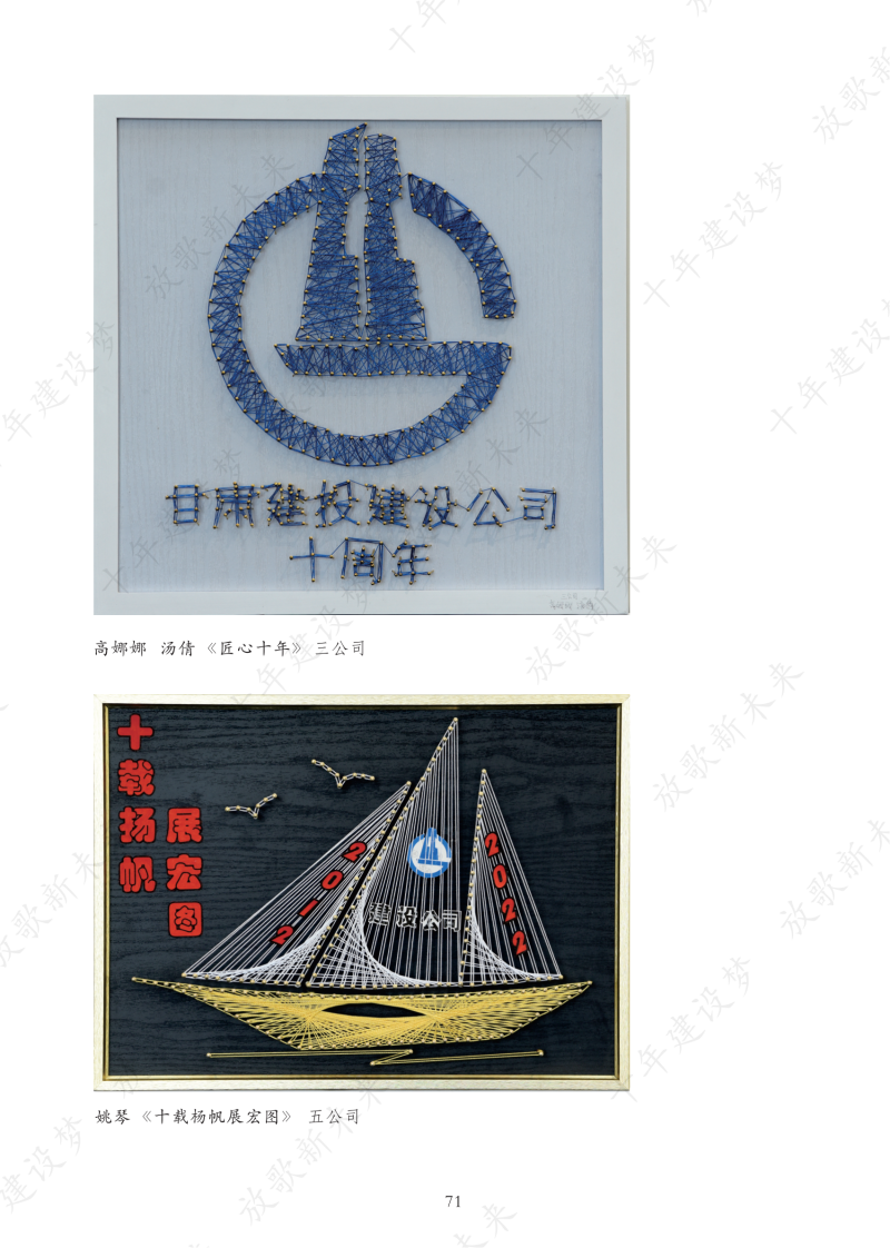 為更好聚焦企業(yè)發(fā)展變遷,深挖企業(yè)精神內(nèi)涵,引導(dǎo)全司職工從企業(yè)十年發(fā)展的歷程軌跡中汲取力量,以強烈的責(zé)任感和飽滿的精神狀態(tài)投入到各項工作中。根據(jù)公司黨委關(guān)于《慶祝建司十周年主題宣傳及系列活動實施方案》的通知要求,建設(shè)公司工會組織開展了慶祝建司十周年“征文活動”、“第二屆職工藝術(shù)作品展”等活動。此次系列活動共收到140余名職工的168件作品,包括征文、書法、油畫、國畫、攝影、十字繡、剪紙、小制作等十多個種類。最終經(jīng)過各基層工會主席評選確定入冊作品155件,其中攝影作品38件、書法作品38件,美術(shù)作品26件,手工作品17件,征文作品36篇。這些作品創(chuàng)意新穎,主題突出,內(nèi)容豐富,充分體現(xiàn)了企業(yè)精神譜系和廣大職工的精神面貌,從不同角度展示了全司廣大職工的聰明智慧和藝術(shù)才華,反映了職工們心系企業(yè)、愛崗敬業(yè)、構(gòu)建和諧社會的熾熱情懷。