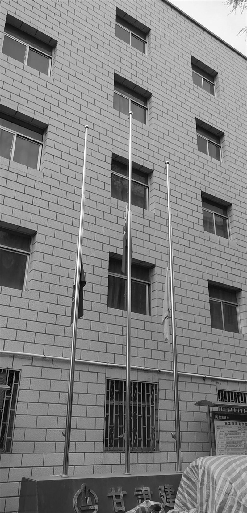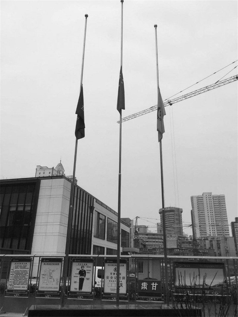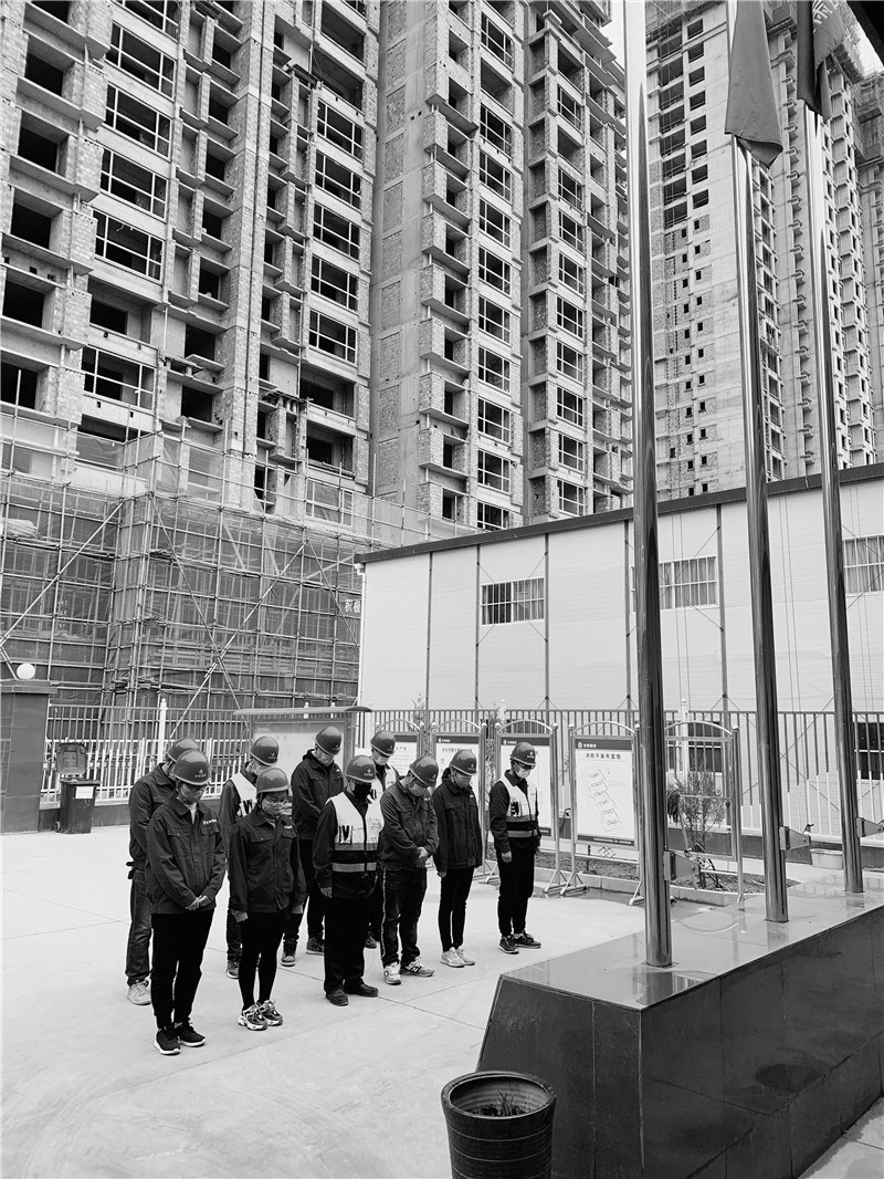 建設(shè)公司白塔寺人防疏散基地項(xiàng)目、西北師范大學(xué)附屬中學(xué)新建學(xué)生公寓樓項(xiàng)目、蘭州新區(qū)瑞嶺名郡項(xiàng)目、蘭州環(huán)球中心項(xiàng)目、天水工業(yè)博物館項(xiàng)目、定西市安定區(qū)南環(huán)路棚戶區(qū)改造項(xiàng)目、榆中阡陌院項(xiàng)目、渭源縣城北環(huán)路東段棚戶區(qū)改造工程項(xiàng)目等施工生產(chǎn)一線項(xiàng)目部在當(dāng)天自發(fā)降半旗默哀。上午10時(shí),現(xiàn)場(chǎng)作業(yè)車(chē)?guó)Q響,全體人員凝神肅立,表達(dá)對(duì)犧牲烈士和逝世同胞的崇高敬意和深切哀思。