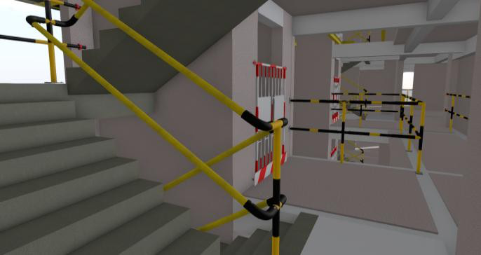 通過BIM模型預先識別標準層洞口、臨邊、設備機具等危險源,提早發(fā)現(xiàn)可能存在的安全隱患,將更多的時間用于安全風險的評估與措施的制定,提前在模型中進行安全防護,將防護設施布置完善。