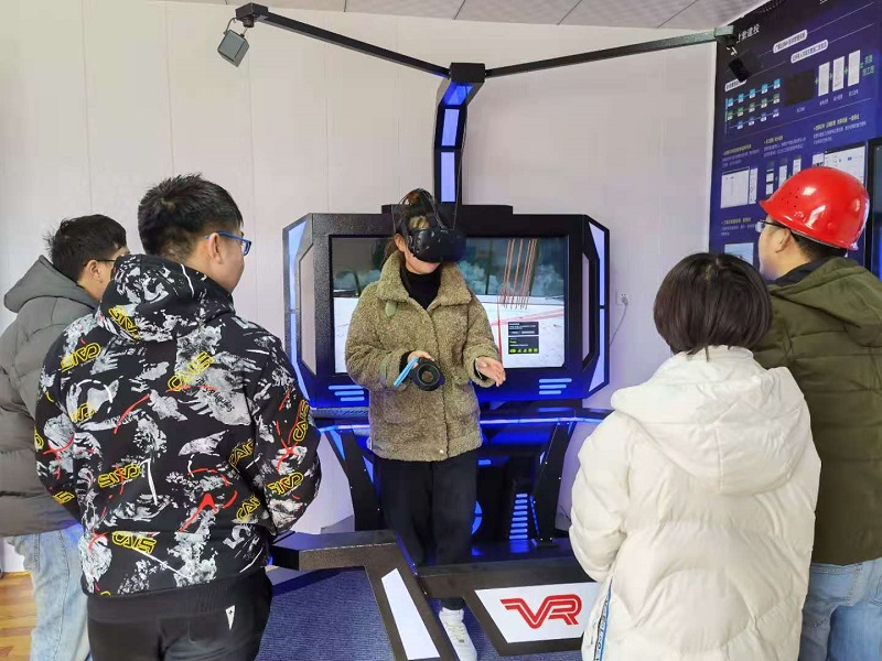 在項目部“BIM+智慧工地”展示廳,大家被VR體驗平臺和技術成果展示所吸引,紛紛上前體驗。該項目信息化智能管理方面運用BIM三維模擬技術應用,智慧工地采用質量安全巡檢系統(tǒng)、遠程視頻監(jiān)控、塔吊監(jiān)測、環(huán)境監(jiān)測系統(tǒng),將施工過程中涉及到的人、機、料、法、環(huán)等要素進行實時、動態(tài)監(jiān)控助力建設項目的有序實施。
