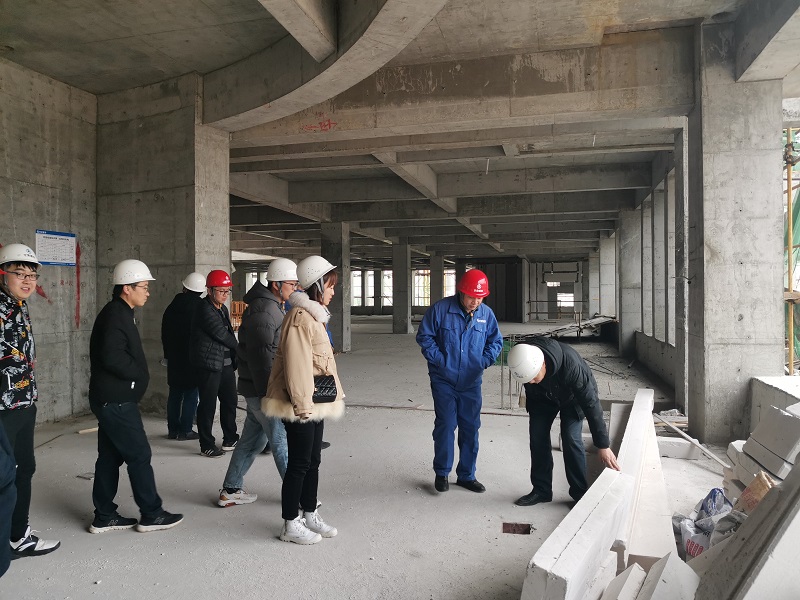 在觀摩樓體和了解施工進度的過程中,全體人員通過講解感悟到作為黨員示范工程,該項目團隊咬定目標、攻堅克難搶抓工期的決心。