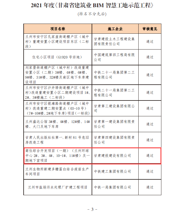 近日,甘肅省建筑業(yè)聯(lián)合會公布2021年甘肅省建設(shè)工程文明工地、綠色工地示范工程名單以及2021年度《甘肅省建筑業(yè)BIM+智慧工地示范工程》評選結(jié)果。經(jīng)過申報(bào)、初審、復(fù)查評價(jià)、公示等環(huán)節(jié),建設(shè)公司共計(jì)13個(gè)項(xiàng)目三榜有名,獲評省級文明工地、綠色工地示范工程、BIM+智慧工地示范工程。