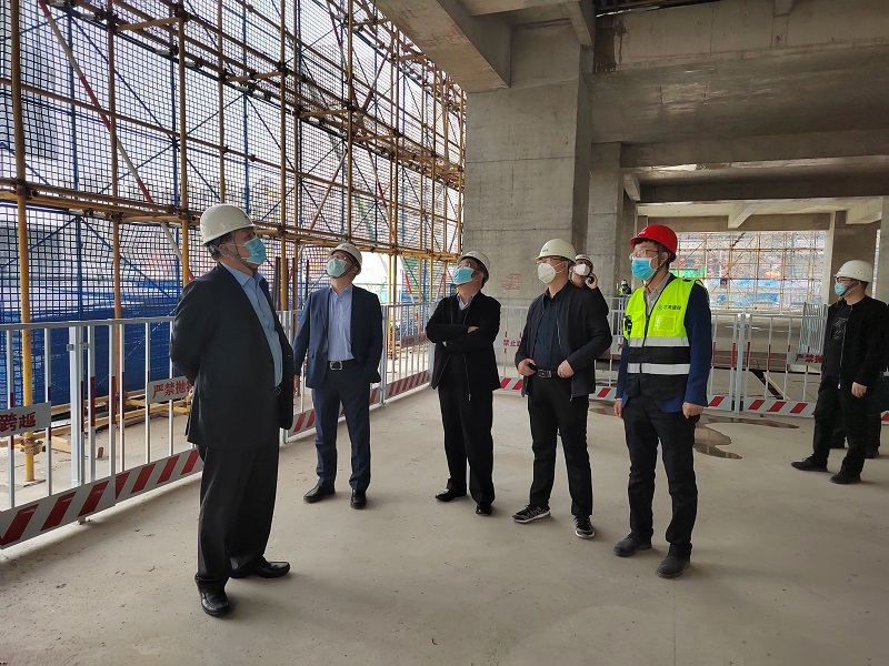 在蘭州環(huán)球中心項(xiàng)目,李鎖林深入施工現(xiàn)場對超高層5#樓及一期工程進(jìn)行全面細(xì)致的查看。充分肯定建設(shè)公司蘭州環(huán)球中心項(xiàng)目的整體工作推進(jìn),并對工程的安全、質(zhì)量、信息化建設(shè)、疫情防控工作進(jìn)行點(diǎn)評。