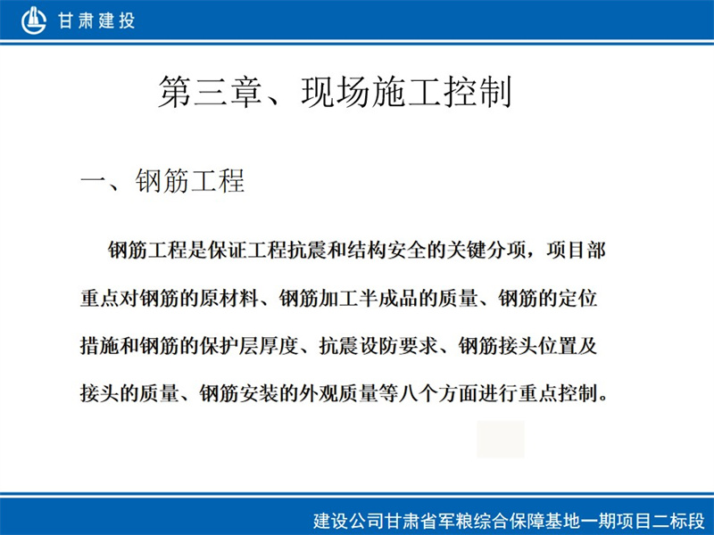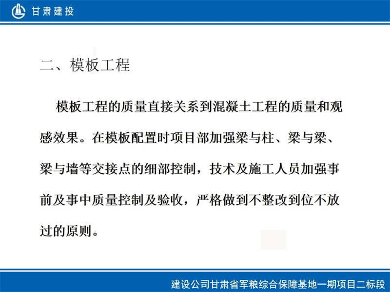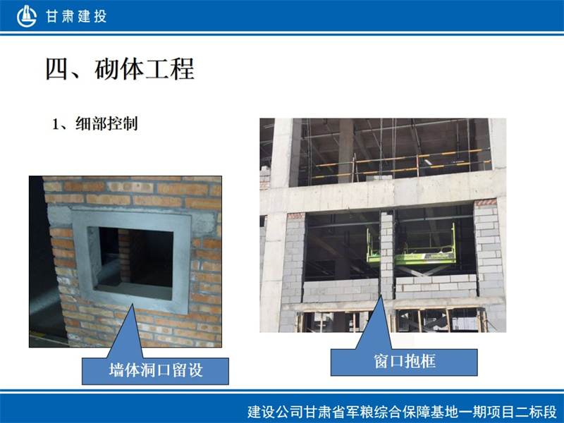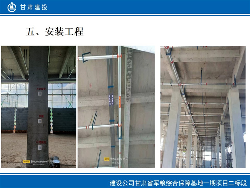 該工程位于甘肅省蘭州市榆中縣和平工業(yè)園區(qū)臥龍川產(chǎn)業(yè)園區(qū)內(nèi), 包括低溫成品庫、大米雜糧加工車間、一站式服務中心及標準化車間等6棟新建單體建筑。工程質量管理目標為:按照國家頒布的最新施工質量驗收規(guī)范執(zhí)行,達到國家驗收“合格”標準,爭創(chuàng) “飛天獎”。項目工期緊、任務重,在施工工期、施工工序上有嚴格的要求,為保證人材機相互協(xié)作,公司選優(yōu)配強項目管理班子,項目部做好事前策劃,施工中加強整體調(diào)控,圓滿完成質量及工期要求。項目管理團隊在過程中嚴把工程質量,管控施工安全,優(yōu)化施工方案,采用新工藝、新技術、新規(guī)范,在施工中嚴格執(zhí)行安全生產(chǎn)和質量標準化管理要求,認真落實“樣板引路”,以樣板指導施工。