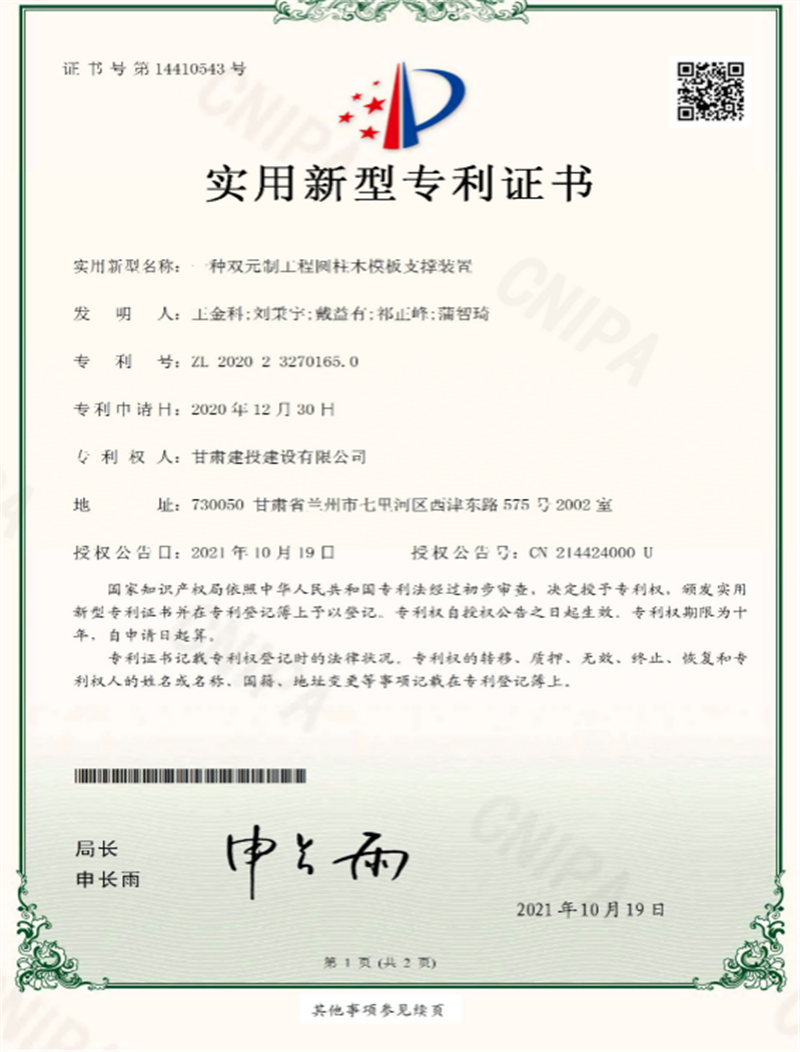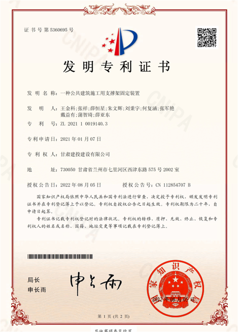 該項目此前先后獲得發(fā)明專利2項、實用新型專利1項、省級工法1項,以及全國綠色建造施工水平評價二星級,甘肅省建筑業(yè)綠色施工示范工程,甘肅省建設(shè)工程科技示范工程,省、市級文明工地,甘肅省建筑業(yè)智慧工地示范工程,首屆全國數(shù)字項目大獎賽二等獎及BIM大賽等共計20項榮譽。