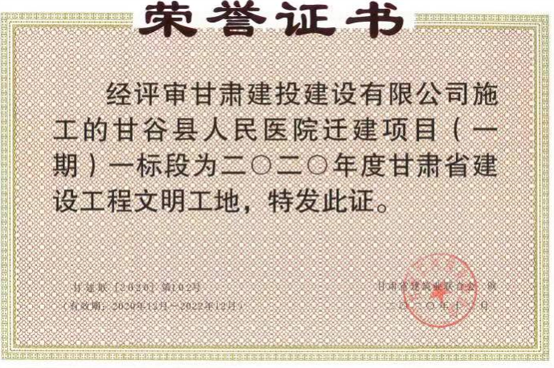 近日,甘肅建投2023年“甘肅建投杯”優(yōu)質(zhì)工程獎揭曉,從41個申報項目中評選出一等獎2項,二等獎4項,三等獎6項。建設(shè)公司承建的甘谷縣人民醫(yī)院遷建項目(一期)1標段項目榮獲二等獎。