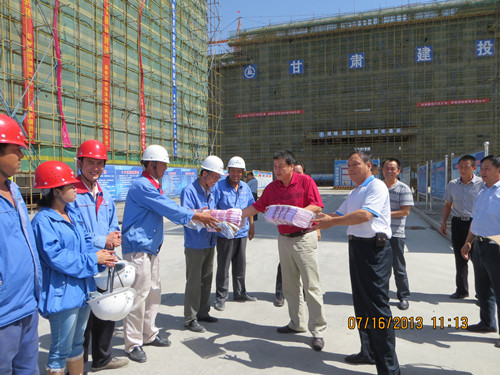 李董事長一到嘉峪關(guān),顧不上一路行車的辛苦和疲累,立即趕到嘉峪關(guān)市酒鋼三中工地,一到工地,映入眼簾的是整潔的施工現(xiàn)場,封頂儀式留下的條幅依舊鮮艷奪目,綠色的密目網(wǎng)和黃色的腳手架相映成輝,工地上,李董事長首先對現(xiàn)場施工人員進(jìn)行了慰問,發(fā)放了慰問品,并聽取了建設(shè)公司三公司領(lǐng)導(dǎo)的簡短匯報(bào),饒有興致的查看了隔震墊施工的技術(shù)成果,并詳細(xì)了解了隔震墊的施工工藝,在樓層上,肯定了框架的施工質(zhì)量,也提出了施工方面的不足與改進(jìn)的地方,緊接著對建設(shè)公司三公司在嘉峪關(guān)所屬項(xiàng)目逐個(gè)進(jìn)行了檢查指導(dǎo)。