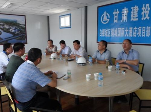 近日,建投建設(shè)公司董事長(zhǎng)兼總經(jīng)理李鎖林一行檢查白銀銅城國(guó)際大酒店項(xiàng)目。