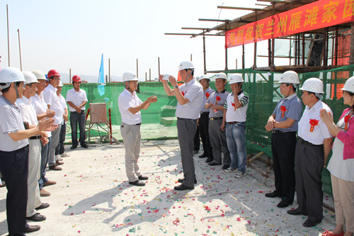 雁灘家園2#樓順利封頂    甲方當場獎勵施工方五萬元