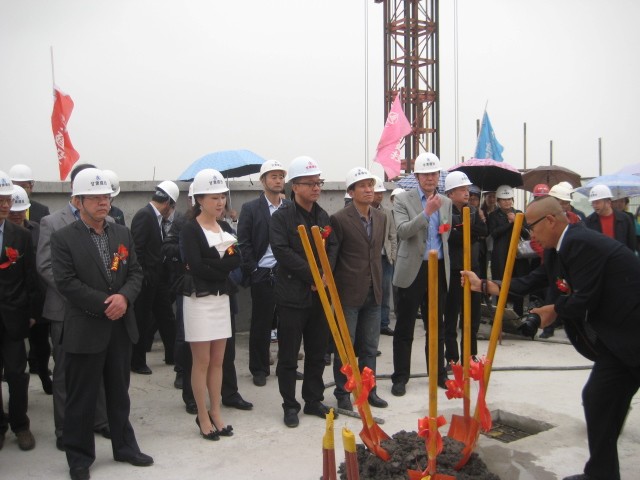 5月9日上午,在高新大廈項目施工現(xiàn)場,伴隨著最后一方砼的澆筑到位,彩旗迎風飄揚,鑼鼓聲震耳欲聾,工人們的臉上洋溢著喜悅的神色,原來這里即將隆重舉行高新大廈封頂儀式,整個儀式現(xiàn)場裝飾一新,呈現(xiàn)出一派喜慶祥和的氣氛。