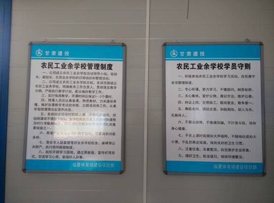 為深入貫徹黨的十八大精神,落實(shí)黨中央、國務(wù)院關(guān)于做好農(nóng)民工工作的要求,確保安全生產(chǎn),我公司臨夏體育場項(xiàng)目部農(nóng)民工業(yè)余學(xué)校掛牌成立。
