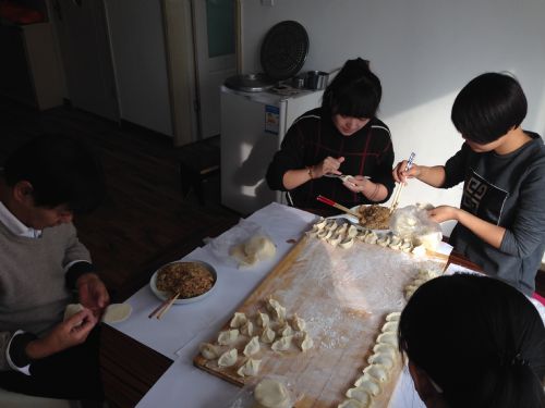 由于最近氣候轉寒冷,在公司領導的支持幫助下, 五公司團支部書記提議,聯合辦公室組織團員青年,開展一次下基層送溫暖活動。以激勵抗嚴寒,奮戰(zhàn)在生產一線職工的干勁,活動主題大家討論認為包餃子比較實惠。活動當日,團支部書記早早的帶領大家在超市采購了餃餡、蝦仁、蔬菜等包餃子的必需品及各類水果,之后便大包小包拎到時代•海德堡莊園住宅小區(qū)項目部,又手忙腳亂的開始摘菜、剁餃餡,一切準備就緒后,調餃餡這關鍵一道工序沒人敢動手,還好炊事員請來社區(qū)大媽做技術指導。
