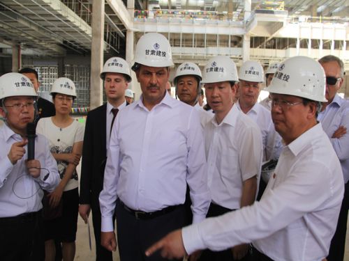 7月6日,由白俄羅斯副總理加里寧•阿納托利•尼克拉耶維奇率領(lǐng)的白俄羅斯政府代表團(tuán)到甘肅建投參觀考察,副省長夏紅民陪同出席活動。甘肅建投董事長、總經(jīng)理蘇海明,黨委書記、副董事長宋忠慶等領(lǐng)導(dǎo)會見白俄羅斯政府代表團(tuán)一行。在甘肅建投水岸天成房地產(chǎn)項目和在建的甘肅科技館、甘肅農(nóng)業(yè)大學(xué)實驗教學(xué)中心A棟樓工程,加里寧一行就甘肅建投企業(yè)規(guī)模實力、業(yè)務(wù)范圍、技術(shù)優(yōu)勢、項目管理等情況進(jìn)行了解。