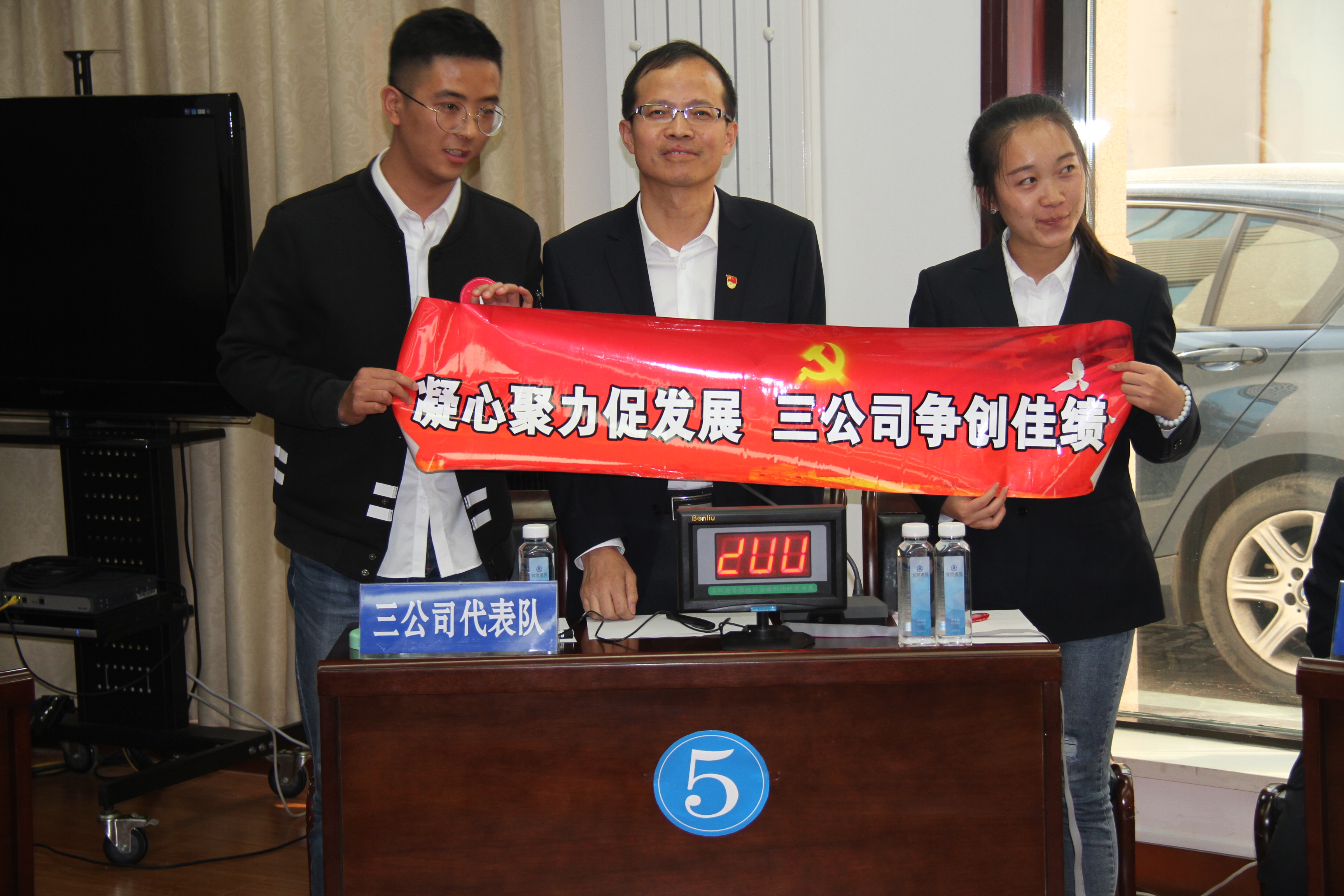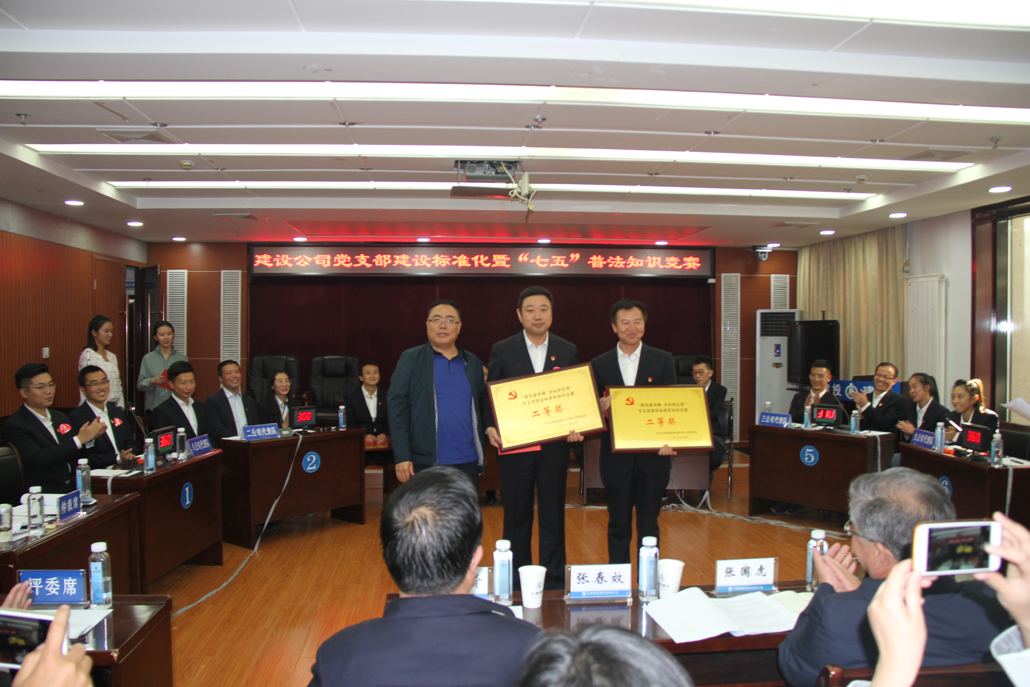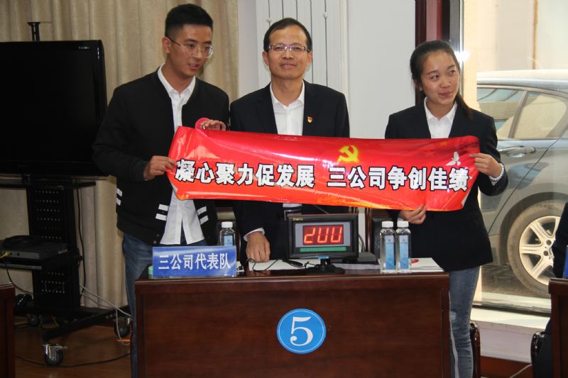 比賽現(xiàn)場氣氛熱烈活躍,各代表隊選手都準備充分、實力不俗,在必答環(huán)節(jié)能夠較為快速準確地作出回答,在搶答環(huán)節(jié)時也踴躍搶答,精彩的答題表現(xiàn)得到了現(xiàn)場職工觀眾的一致好評與陣陣掌聲,最終經(jīng)過激烈角逐,三公司黨支部代表隊獲得此次知識競賽的一等獎,八公司代表隊、九公司代表隊分別獲得二等獎,二公司代表隊、專業(yè)公司代表隊、機關代表隊分別獲得三等獎、六公司代表隊獲得優(yōu)秀組織獎,公司在家領導班子成員分別給獲獎單位頒發(fā)了獎牌和獎品。