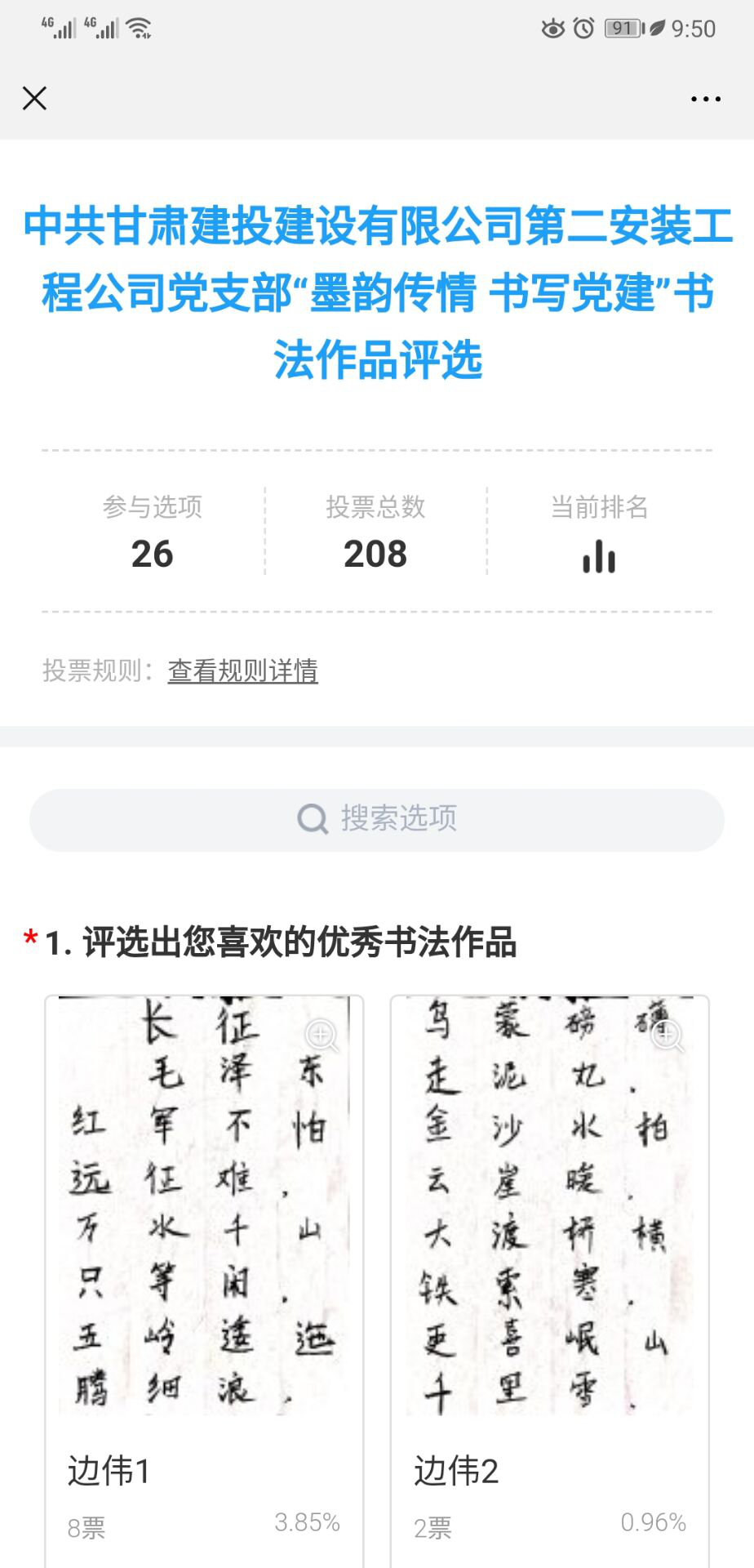 為在全體職工中弘揚(yáng)中國傳統(tǒng)文化,激發(fā)職工的愛國愛黨熱情,營造和諧、積極的工作氛圍,二安公司以建黨98周年、建國70周年為契機(jī),特別開展以“墨韻傳情 書寫黨建”為主題的黨日活動(dòng),鼓勵(lì)全體職工以書法競賽的形式向黨建獻(xiàn)禮,向國慶獻(xiàn)禮。