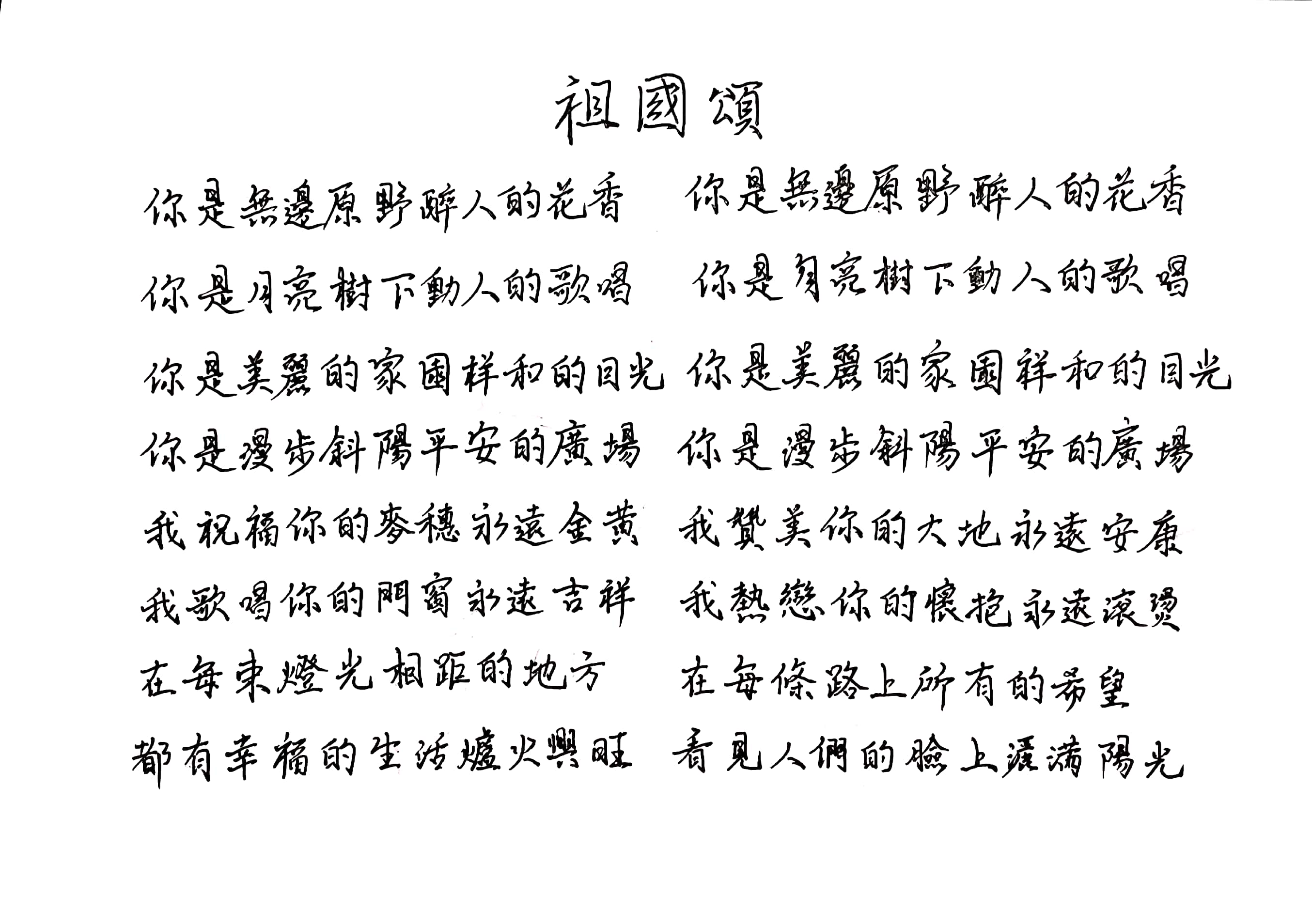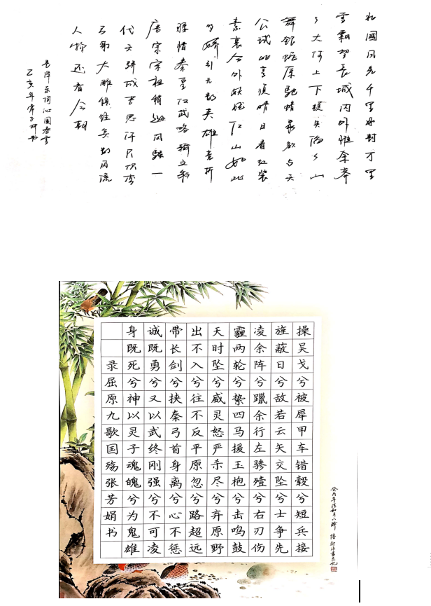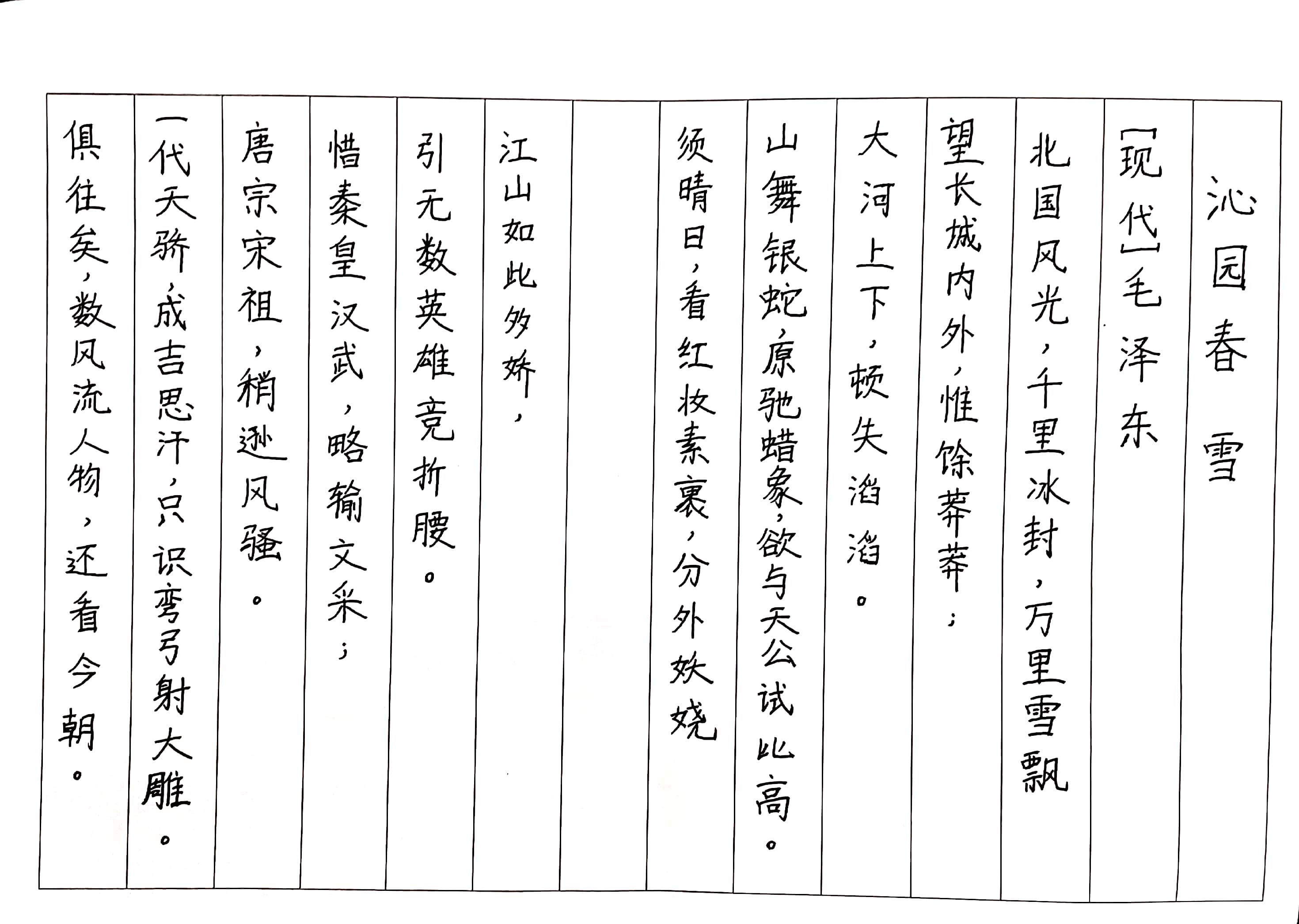 (三等獎(jiǎng)  唐祺臻-《祖國頌》)                                                          (三等獎(jiǎng)  張晶晶-《沁園春 雪》)
