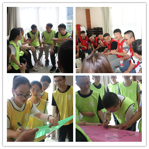 在開(kāi)營(yíng)儀式上,參訓(xùn)人員被隨機(jī)分為四支隊(duì)伍,培訓(xùn)老師通過(guò)簡(jiǎn)單的小游戲和自我介紹環(huán)節(jié)幫助大家進(jìn)行正式訓(xùn)練前的熱身,并有效調(diào)動(dòng)起全員參與活動(dòng)的積極性。隨后在“領(lǐng)導(dǎo)班子建設(shè)”和“團(tuán)隊(duì)文化建設(shè)”的環(huán)節(jié)中,四支隊(duì)伍迅速確定了團(tuán)隊(duì)領(lǐng)導(dǎo)班子、隊(duì)名、口號(hào)以及團(tuán)隊(duì)造型,在最短的時(shí)間內(nèi)完成了建立團(tuán)隊(duì)的相關(guān)任務(wù),初步建立起團(tuán)隊(duì)凝聚力及高效執(zhí)行力。